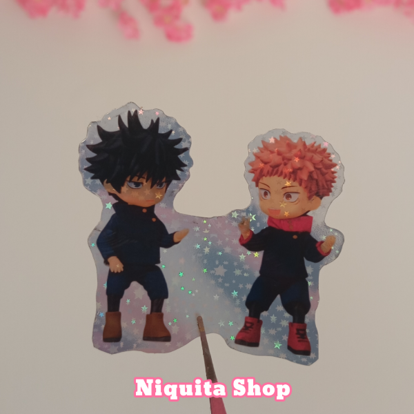 Megumi y Yuji doll sticker holo - Stock inmediato